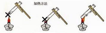 Ø外焰加热,不能与灯芯接触②先给试管均匀加热,受热均匀后再固定在药品部位加热。③试管外壁不能有水珠④试管口要略向